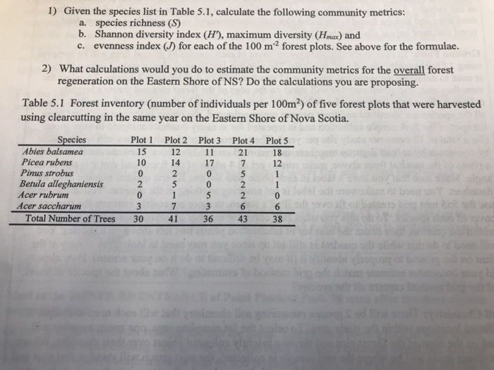 Solved 1 Given The Species List In Table 5 1 Calculate The Chegg Com